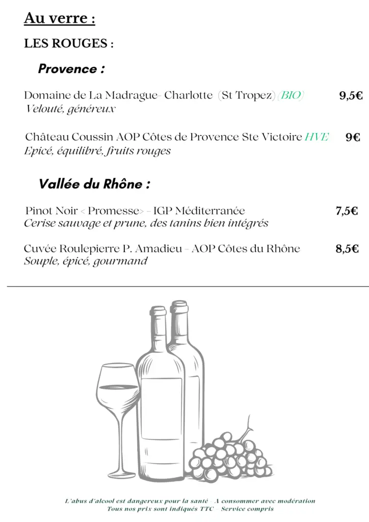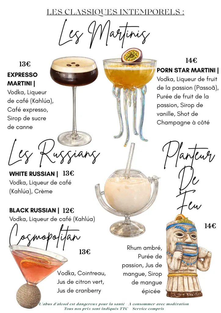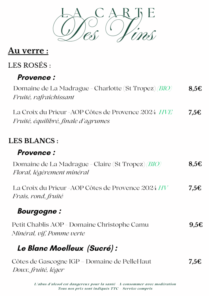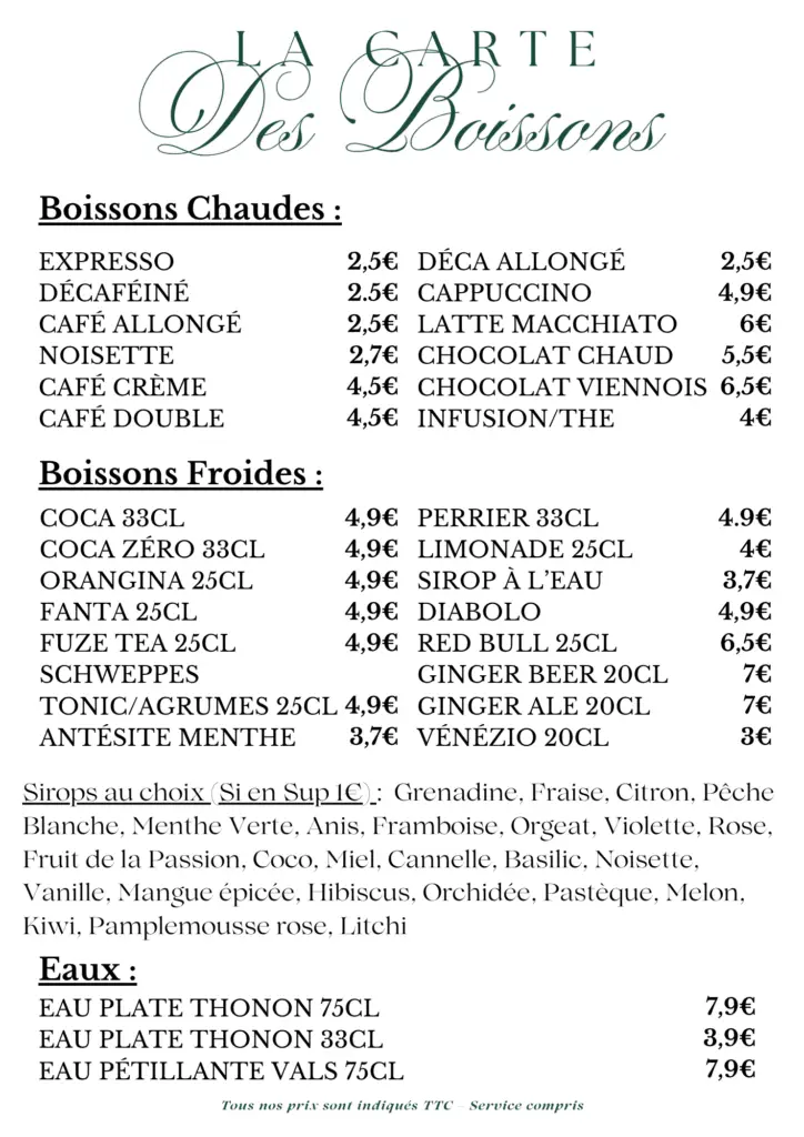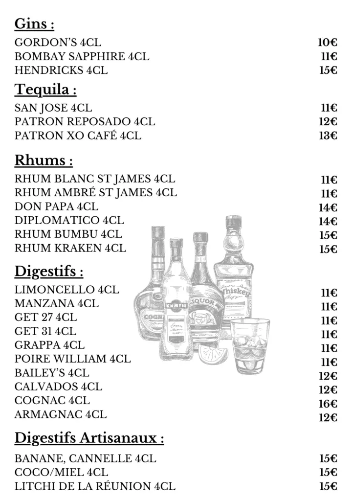 Découvrez nos cocktails signature, vins de région, spiritueux premium, et boissons sans alcool maison, à savourer en terrasse ou dans notre coin lounge