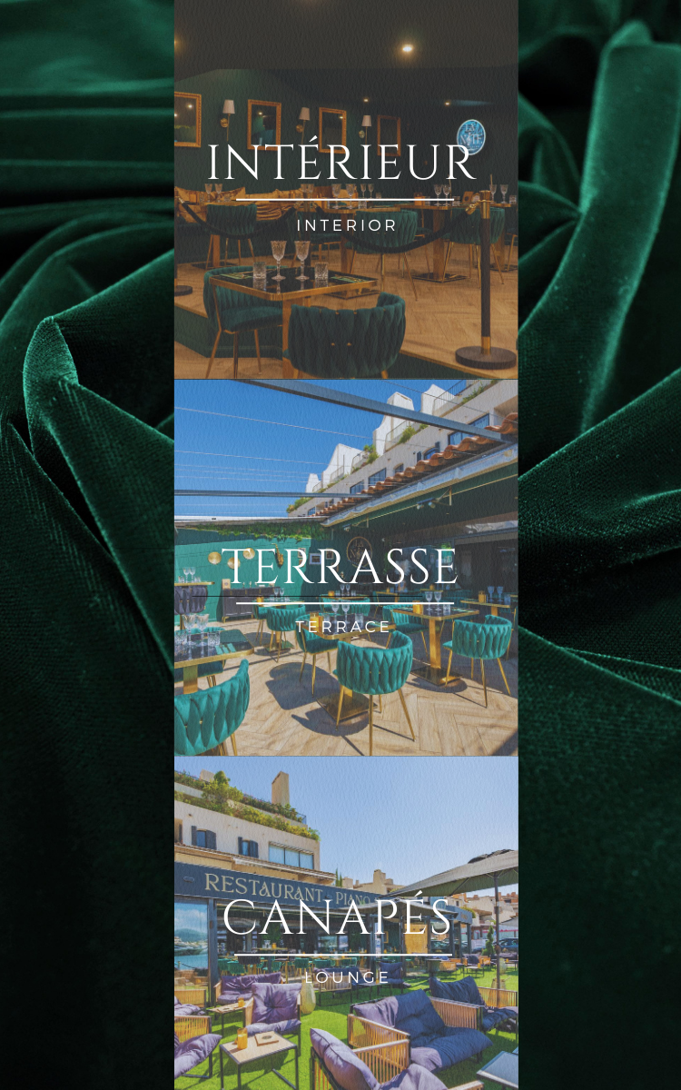 Terrasse : Un cadre lumineux avec vue sur le port, parfait pour savourer votre repas en extérieur. Elle peut être entièrement ouverte ou fermée selon la météo.